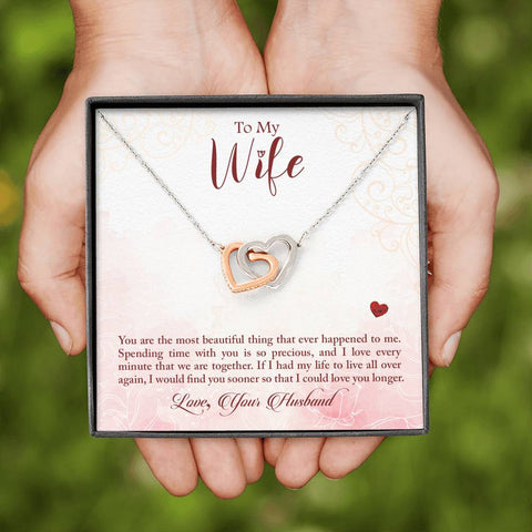 "To My Wife....You are the most beautiful thing that ever happened to me. Spending time with you is so precious, and i love every minute that we are together. If i had my life to live all over again, I would find you sooner so that i could love you longer....Love, Your Husband"