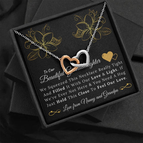 "To Our Beautiful Granddaughter.....We Squeezed This Necklace Really Tight And Filled It With Our Love & Light. If We're Ever Not Here & You Need A Hug Just Hold This Close To Feel Our Love...Love From Nanny & Grandpa"