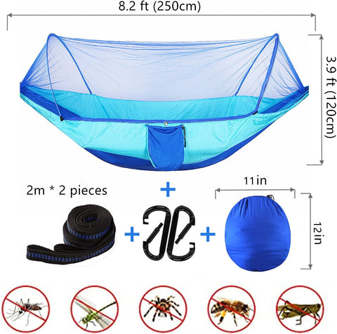 The Hammock Mosquito Net is a fully automatic and quick-opening hammock designed to keep pesky insects at bay. This hammock is easy to set up and can be hung from a variety of sturdy objects, including trees, posts, stands, and large rocks.