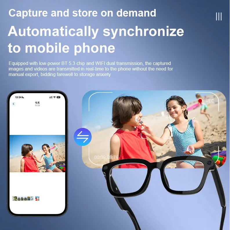 【Smart App Control & Object Recognition】Smart glasses connect to the companion app for easy setup, file management, and feature control. They support AI object recognition to help identify items and improve your daily efficiency—perfect for travel exploration and a smart lifestyle.