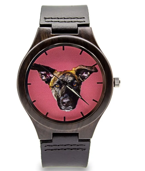 Keep an eye on the time and make a solid impression everywhere you go with this stylish wooden watch. Designed to last, it has a classic band, for a look that never goes out of style. Just upload your photo/image and we will place it in the dial of the wood watch. Add a custom message and we will engrave it on the back of the watch.