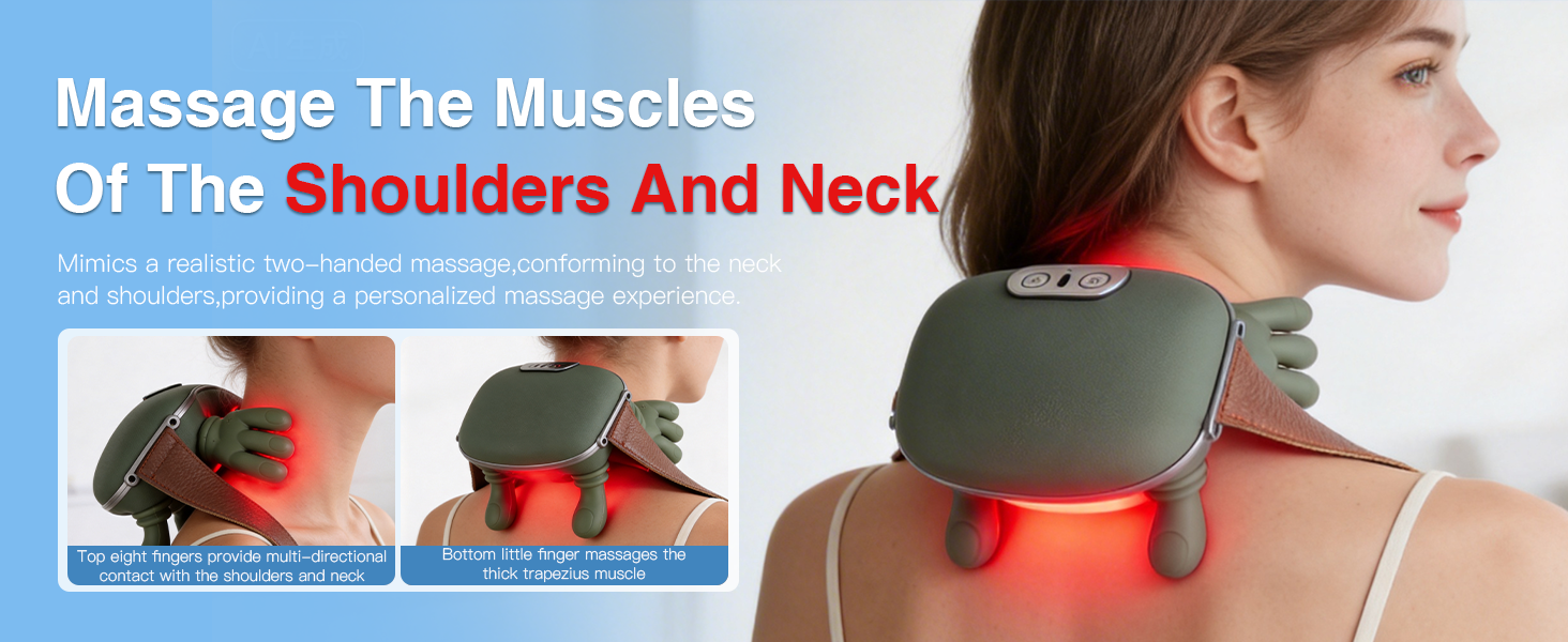 Neck Massager with Heat for Pain Relief Deep Tissue Cordless Neck and Shoulder Massager with Heat and Fingers Bionic Hand