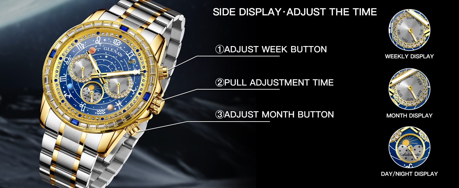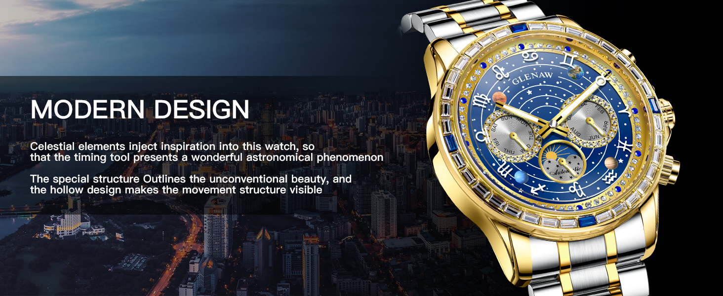 Rotating 12 Zodiac Constellations: Every tick of the second hand sets the 12 constellations in motion, creating a miniature rotating universe on your wrist. Time has never felt so alive.