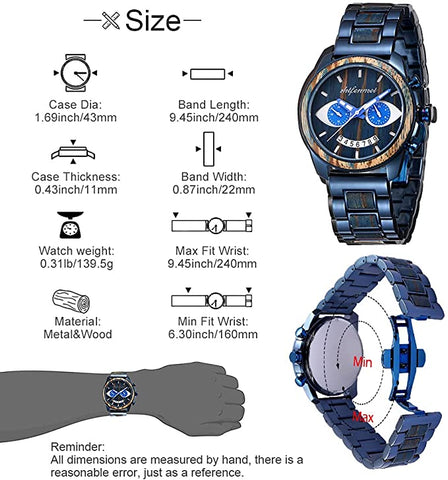 • The case and strap surface are coated with glossy oil to make the wooden watch more attractive and protect the wooden surface at the same time. We promise it is made of 100% natural wood, not plastic