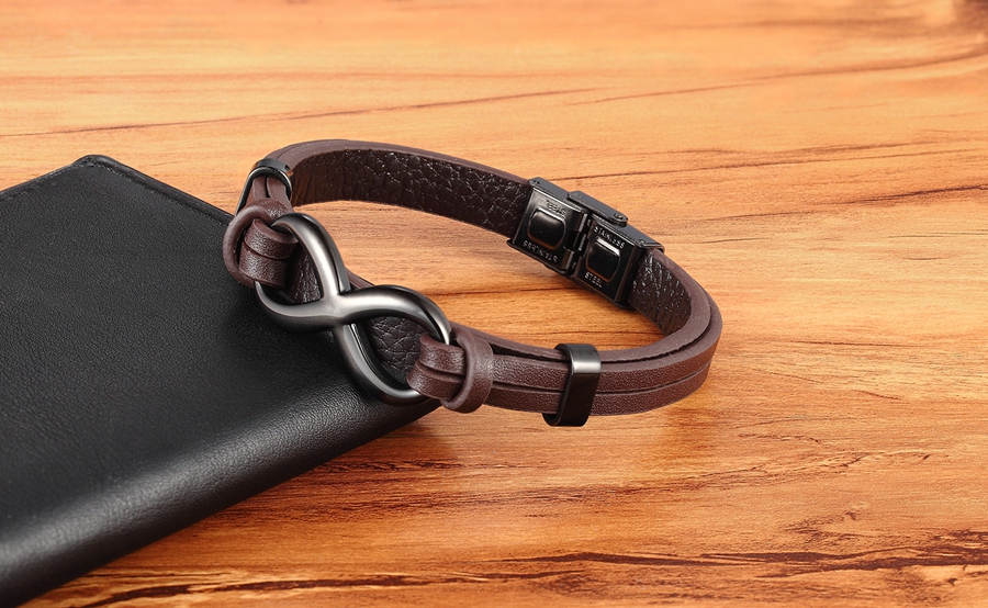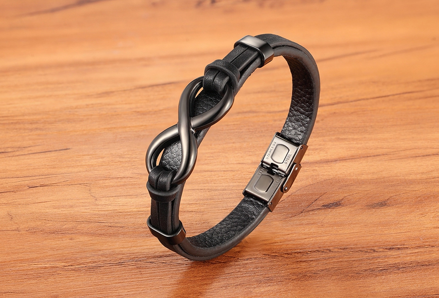 Stainless Steel Leather Bracelet Infinity Logo Special Popular Pattern Men's Bracelet DIY