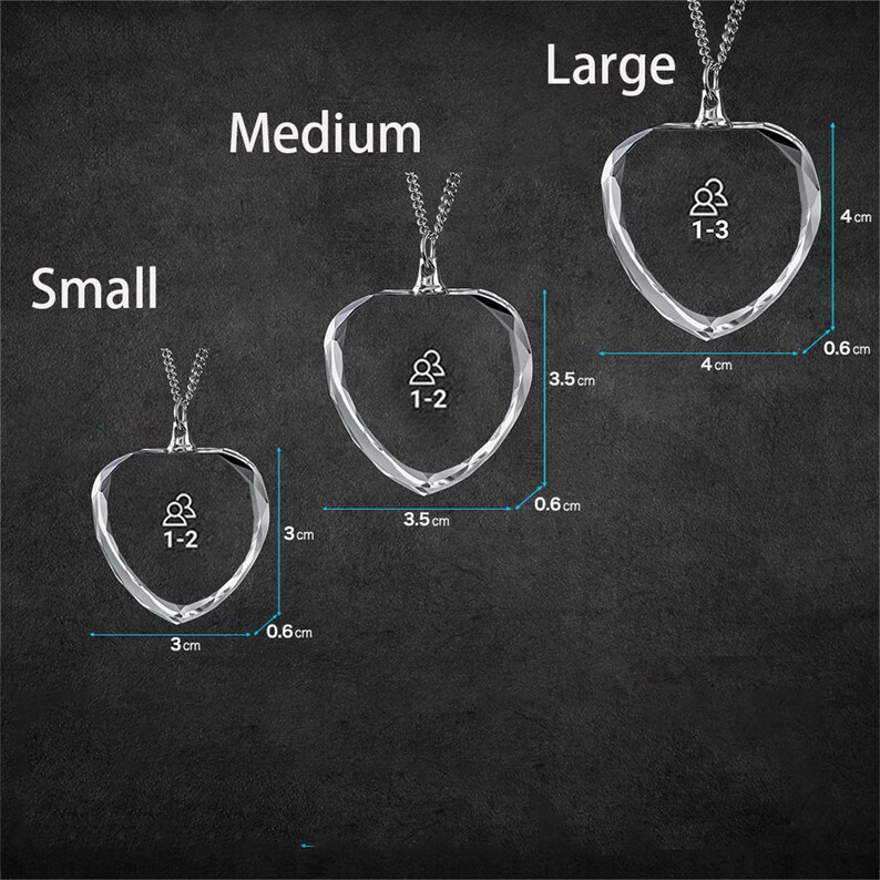 That depends on how many people there are in your picture. The bigger the size of your Crystal, the more realistic and detailed your 3D photo is going to be! See below the best way to pick the right size: