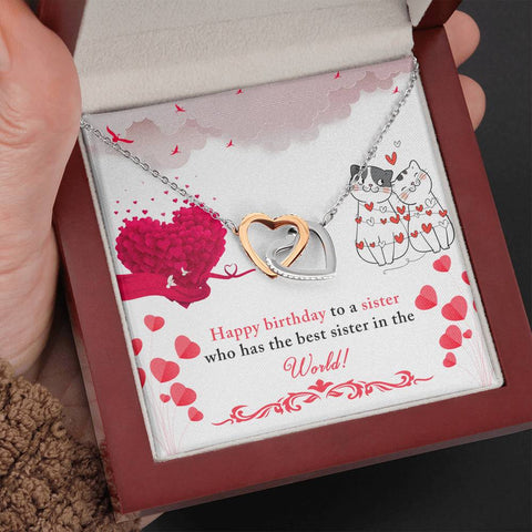 To My Sister - Best Sister in the World - Interlocking Hearts Birthday Necklace