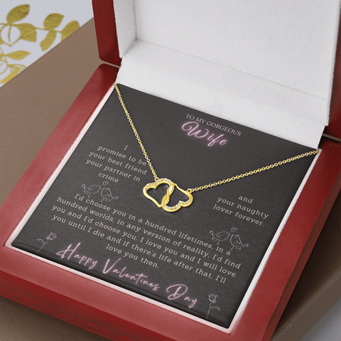 "To My Gorgeous Wife....I promise to be your best friend your partner in crime...and your naughty lover forever....I'd choose you in a hundred lifetimes, in a hundred worlds, in any version of reality, I'd find you and I'd choose you, I love you and I will love you until I die and if there's life after that, I'll love you then....Happy Valentine's Day!"